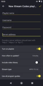 2- Choose to connect with XTREAM codes API to avoid entering all m3u files.